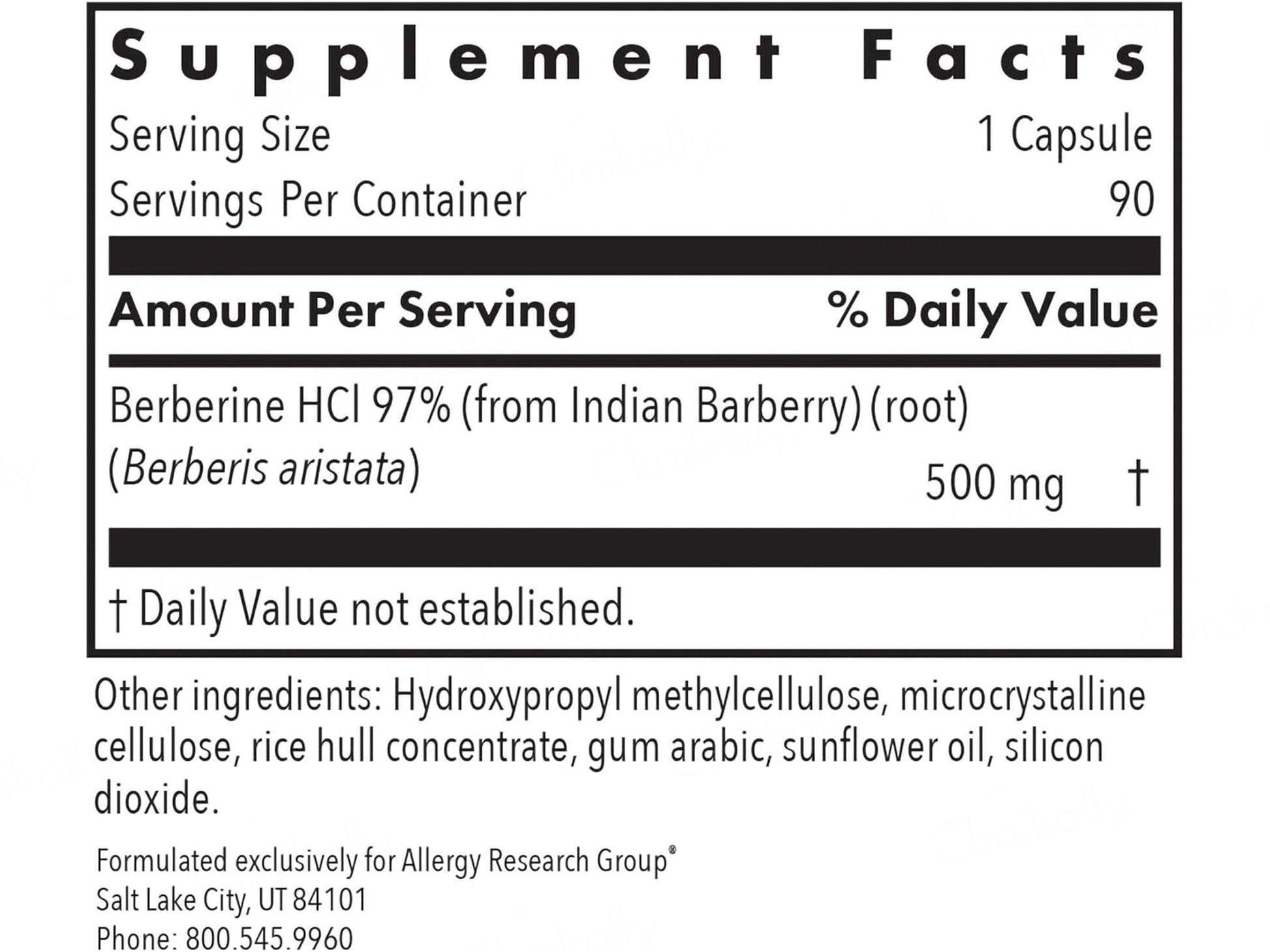 Allergy Research Group Berberine 500 Dietary Supplement Vegetarian Capsule