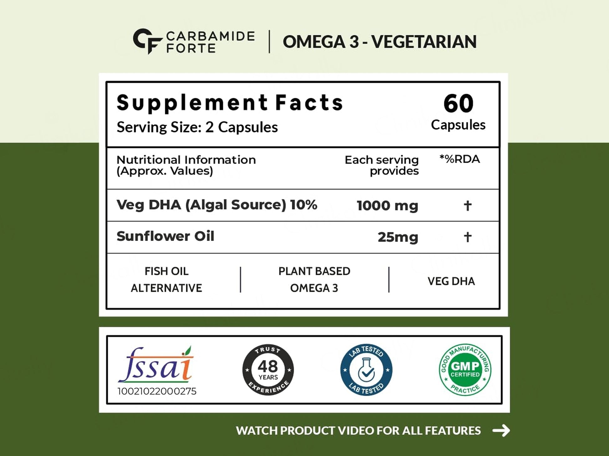 Carbamide Forte Vegetarian Omega-3 1000mg With Algal DHA 10% Liquid Filled Capsule