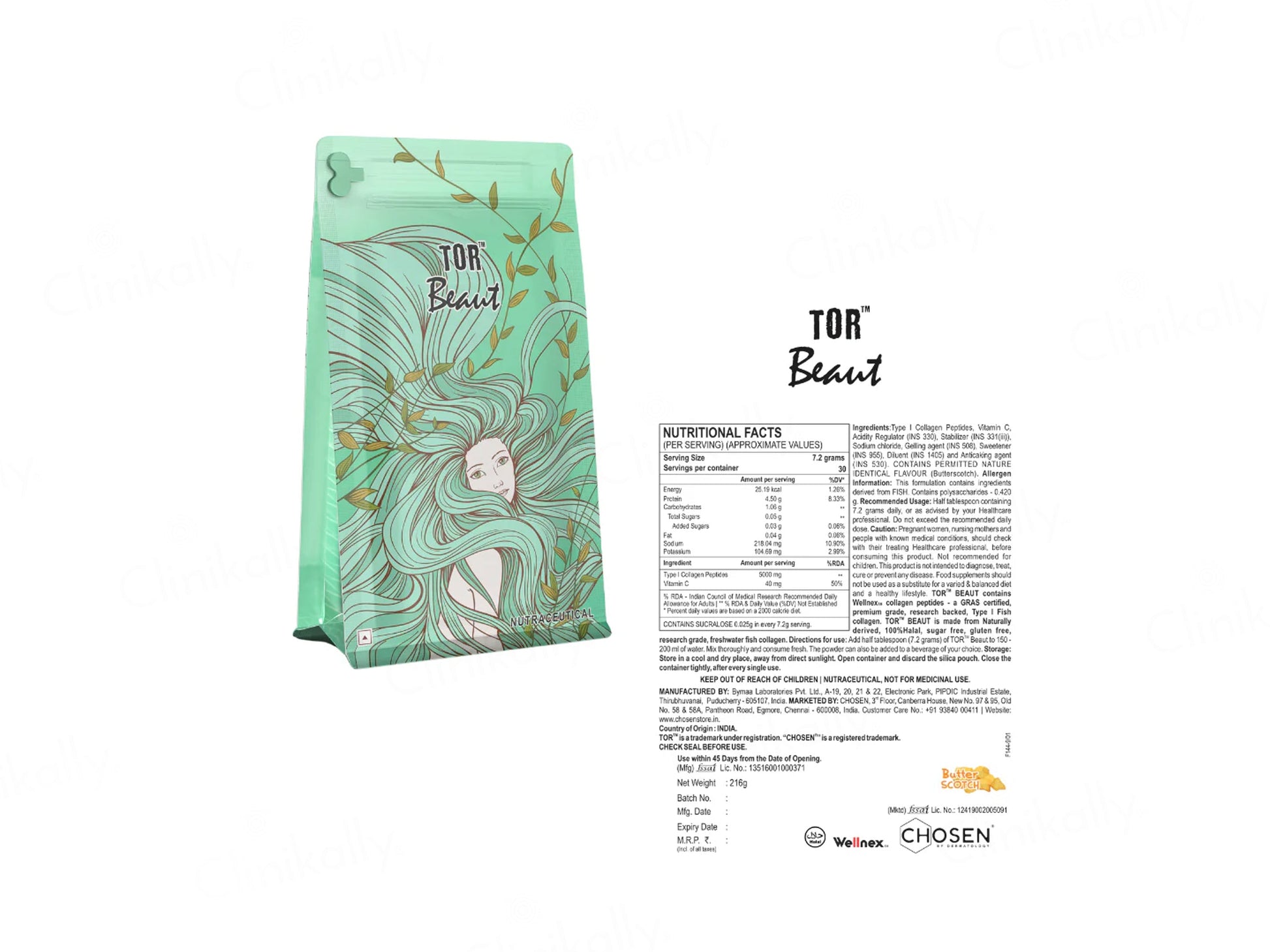 Chosen TOR Beaut Marine Collagen Supplement Powder - Butter Scotch Flavour
