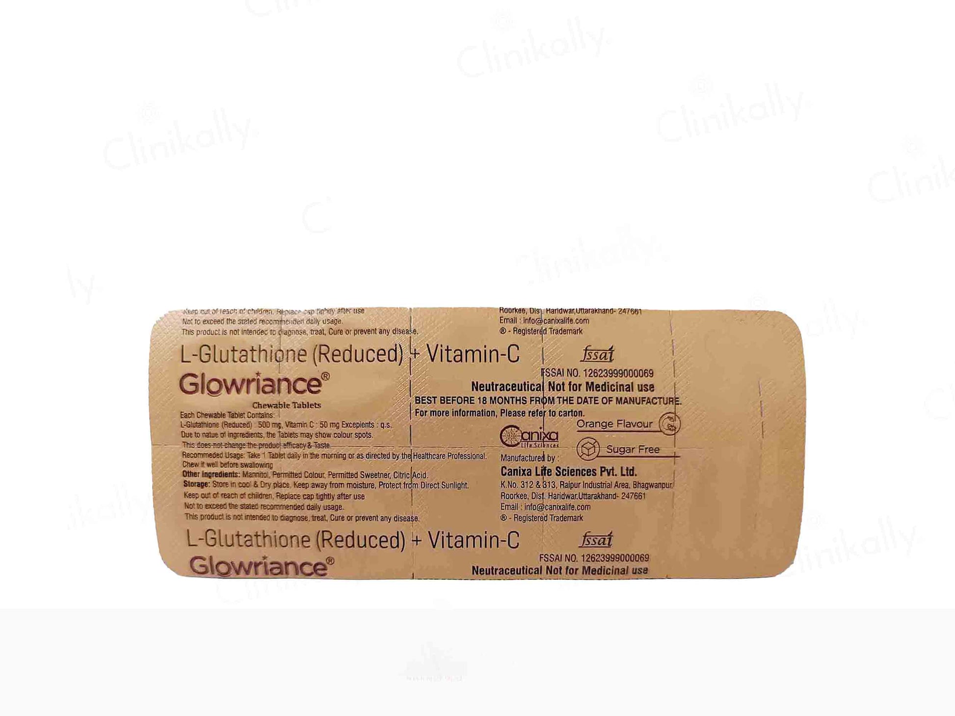 Glowriance Chewable Tablet Orange Flavour Sugar Free