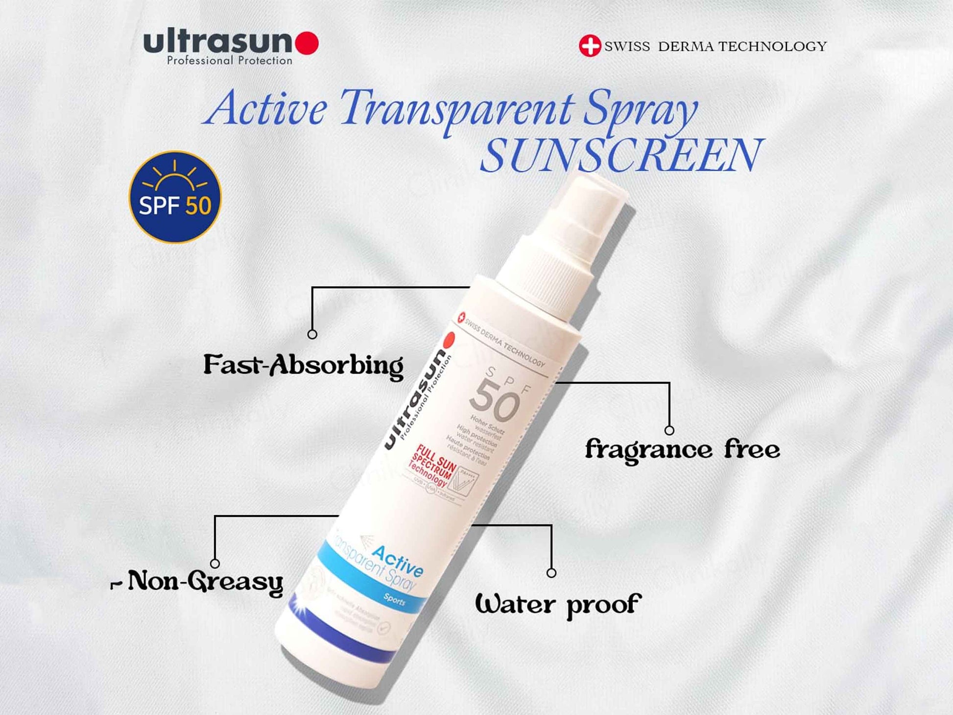 Ultrasun Active Transparent Sports Spray Sunscreen SPF 50 PA++++